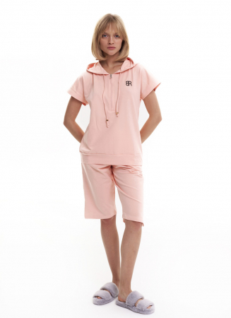 Женский комплект Berrak состоит из футболки с коротким рукавом и капюшоном, с небольшой застежкой; и свободных шорт, на мягкой резинке. Комплект изготовлен из 95 хлопка и 5% эластана,благодаря этому одежда комфортно сидит на теле и не сковывает движений..
