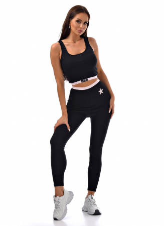 Женский комплект с топом и леггинсами. Ткань в мелкий рубчик.