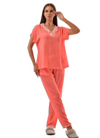 Женский комплект с футболкой с коротким рукавом и широкими укороченными брюками. Тонкая легкая ткань - 100% вискоза.