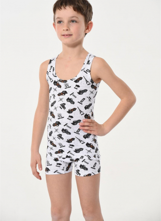 Комплект состоит из майки с широкими плечиками и трусиков боксеров.