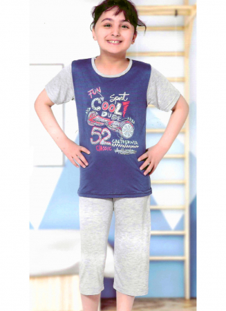 Детский домашний комплект состоит из футболки и удлиненных шорт на резинке