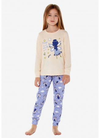 Стильная, уютная детская пижама, приятных оттенков без утеплителя и начеса. Пижама для девочки подойдёт как домашняя одежда, для сна и отдыха. Комплект состоит из кофты (лонгслив) с длинным рукавом и домашних штанов свободного кроя на манжете, выполненных из мягкого трикотажа.