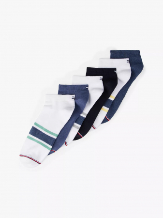 Tommy Hilfiger men's sock. Six pairs of soft, breathable socks made from a premium stretch-cotton blend with an elastic ankle cuff to keep them secure on your feet as you go about your day.