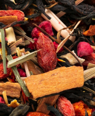 Состав: Иван-чай, ягоды годжи, шафран, облепиха, лимонная трава, кусочки малины, цедра апельсина, корица.