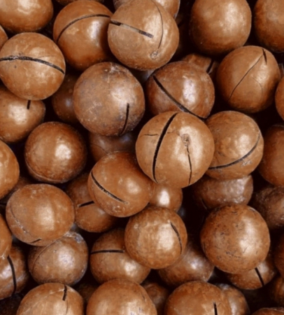 Орех Макадамия содержит большое количество калорий и жиров, благодаря чему быстро утоляет голод. Сам по себе орех достаточно экзотичный. Он имеет толстую скорлупу и орешек имеет вкус сливочного пломбира. Для удобства пользования скорлупа надрезается и в наборе предоставляются ключи для вскрытия скорлупок.