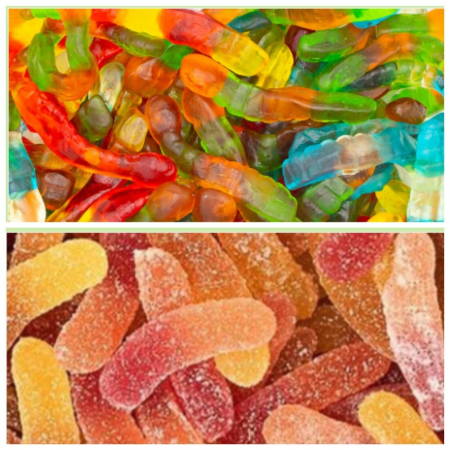 Мармеладные конфеты - это любимое лакомство не только каждого ребенка, но и взрослого. Жевательный мармелад в виде фигурок отличается не только отменным вкусом и ароматом, но и полезными свойствами, так как он производится на основе желатина. Конфеты очень сочные за счет концентрированного сока в составе. Каждой мармеладной фигурке соответствует свой вкус. Мармеладные червячки - веселый и вкусный мармелад! Каждый червячок - это два цвета, два вкуса. Мармеладные мишки - самый популярный вид жевательного мармелада среди детей. Мармеладный микс из фруктовых фигурок в форме ананаса, клубники, винограда, лимона, долек фруктов. Мармеладные фигурки с ароматом ежевики - ассорти из красных и бордовых ягод. Любителям напитка Coca-Cola, несомненно, понравится мармелад в форме бутылочек и с насыщенным ароматом Кока-Колы. Если вы планируете проведение детских утренников, дней рождений или выпускной детского сада, коробка мармеладных конфет отлично подойдет для сладких угощений и мини подарков.