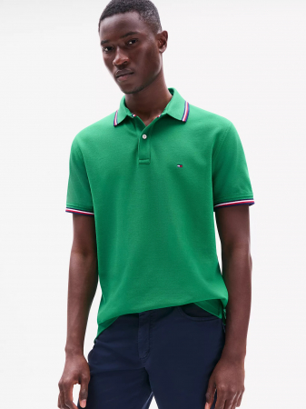 Tommy Hilfiger men's polo. A fresh spin on tradition, this regular-fit polo is made from quick-dry, wicking fabric with ultraviolet protection and features our signature stripe tipping at the cuffs and collar. Comfort? Check. Performance? Style? Check.
