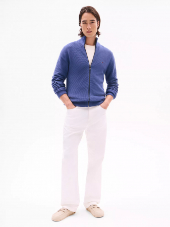 Tommy Hilfiger men's sweater. A unique textured stitch defines this classic zip-up cardigan. Spun from premium cotton with a rib-knit hem, collar and cuffs, this sweater is warm, comfortable and soft to the touch.