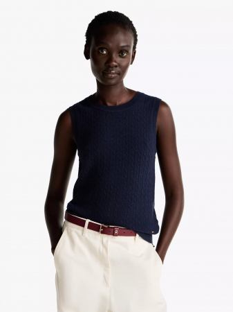 Tommy Hilfiger women's sweater. The classic, preppy aesthetic of the mini cable knit makes this sweater tank a versatile layer. Made from a soft wool blend, it's both lightweight and warm.