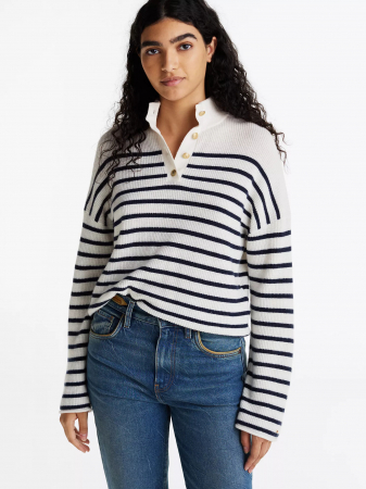 Tommy Hilfiger women's sweater. Our sporty polo sweater features a Henley placket with gold-tone buttons and rolled cuffs. Made from a soft wool blend, it's a warm and lightweight layer.