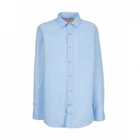 Состав: 55% хлопок, 45% полиэстер. Цвет голубой. Накладной карман на груди. Крой прямой. Длинный рукав. Товар сертифицирован.