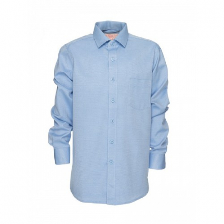 Состав: 65% хлопок, 35% полиэстер. Цвет голубой. Рисунок: мелкая "точка" в тон основной ткани. Крой прямой. Длинный рукав. Товар сертифицирован.