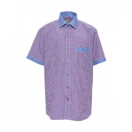 Цвет голубой, фиолетовый. Воротник рубашечный с уплотнением. На груди накладной карман с клапаном. Застежка на пуговицах.