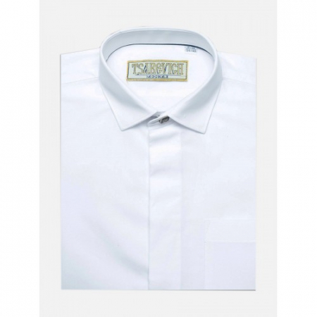 Белоснежная рубашка для мальчика от российского бренда Tsarevich. Прекрасно подойдет для школы, торжественных мероприятий, 1 сентября, утренника.
