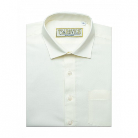 Кремовая рубашка без декора органично дополнит комплект для школы.