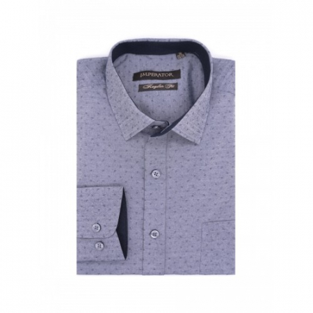 Модель приталенного силуэта, комбинированная контрастной тканью по внутренним вороту и манжетам. Цвет серо-голубой (принтованный). Длинный рукав. Товар соответствует техническому регламенту о безопасности продукции легкой промышленности.