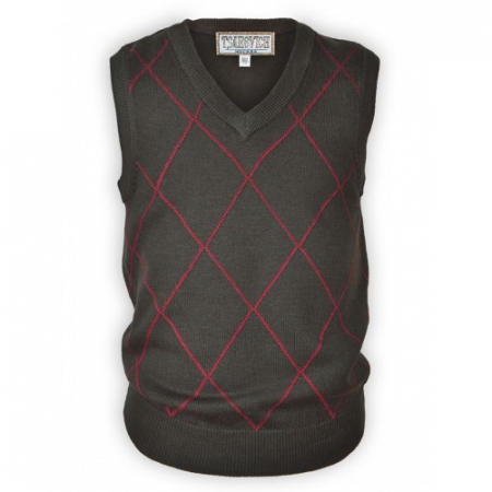 Перед жилета украшен ромбовидными узорами контрастным красным цветом. Состав 65% хлопок/35% акрил. Вязаный жилет выполнен из смесовой пряжи, что придает материалу мягкость и позволяет ребенку чувствовать себя комфортно в течение всего дня.