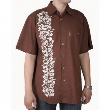 Модель прямого кроя с накладным нагрудным карманом. Цвет коричневый с белым принтом. Короткий рукав. Товар соответствует техническому регламенту о безопасности продукции легкой промышленности.