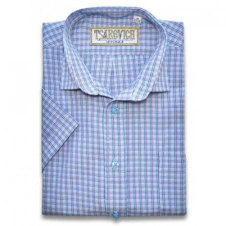 Модель прямого кроя c накладным нагрудным карманом. Цвет голубой (клетка). Короткий рукав. Товар сертифицирован.