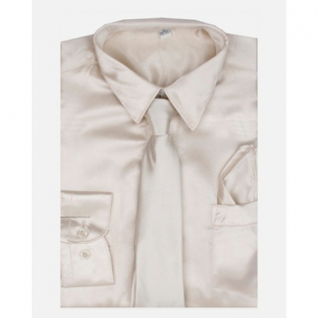 Модель с платком-паше и галстуком в комплекте. Цвет бежевый. Крой прямой. Длинный рукав. Товар сертифицирован.