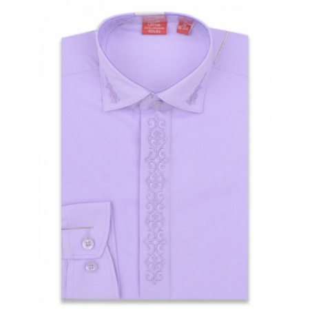 Модель с вышивкой по планке и на вороте. Цвет светло-сиреневый. Крой прямой.Длинный рукав. Товар сертифицирован.
