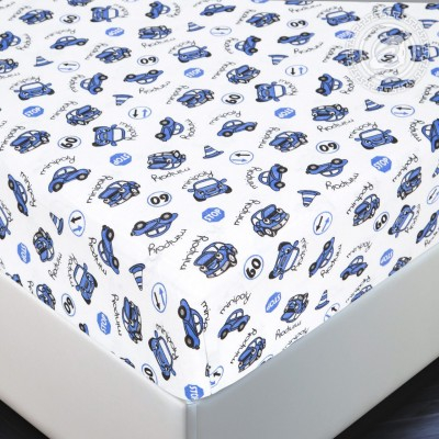 Простыня на резинке с авторским дизайном «Машинки синие» — это удобный и практичный трикотаж, который обеспечивает комфорт деткам во время сна.