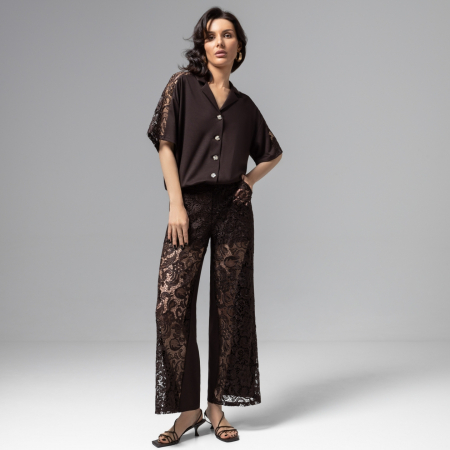 Кюлоты комбинированное с кружевом, Больше, чем просто стиль (горький шоколад) (арт. 00000011885-54)