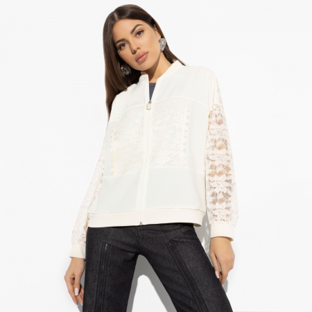 Изготовленный из качественной костюмной ткани «габардин» с дополнительными кружевными вставками, наш бомбер обеспечивает не только стильный внешний вид, но и комфорт в носке. Трикотаж «креп» (100% п/э) делает этот бомбер легким и приятным на ощупь, подчеркивая вашу неповторимость в любой ситуации.