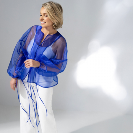 Детали этого жакета, такие как спущенная линия рукава и объемные рукава, обрамленные длинными завязками, создают уникальное сочетание классики и современности. Нежная текстура органзы делает его идеальным выбором для вечерних выходов и торжественных мероприятий. Жакет полупрозрачный, но, несмотря на это, он обладает удивительной способностью добавлять загадочности и шарма вашему образу. Это не просто одежда — это выражение вашего настроения, вашей энергии и вашего стиля. Покупка этого жакета оптом — это шаг к созданию гардероба, который будет отражать вашу истинную сущность.