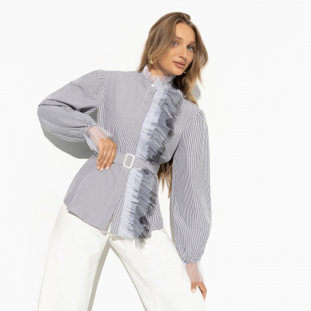 Рубашка «Идеальный стиль (с поясом)» — это воплощение элегантности и утончённого вкуса, которое идеально подходит для создания впечатляющего образа в любой ситуации. Изготовленная из ткани «поплин полоска» и «фатин» (50% хлопок, 50% полиэстер), эта модель сочетает в себе комфорт натуральных материалов и стильный внешний вид. Многослойный декор из сетки добавляет рубашке объёма и особого шарма, привлекая внимание и подчеркивая вашу индивидуальность.
