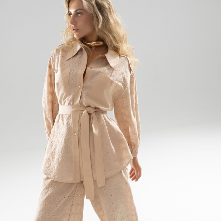 Рубашка «Пик элегантности (с поясом)» легко сочетается с различными элементами гардероба. Носите её с классическими брюками для создания делового образа или с юбкой для более женственного и романтичного стиля. Пояс подчеркивает талию, добавляя образу изысканности и утонченности. В этой рубашке вы всегда будете выглядеть безупречно и стильно, привлекая восхищенные взгляды.