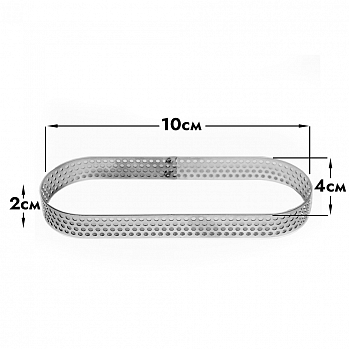 Перфорированная форма для выпечки в виде овала. Предназначена для изготовления основ для порционных пирожных из песочного теста.