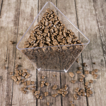 Осколки неправильной формы толщиной 0,8 мм, шириной 2-5 мм.