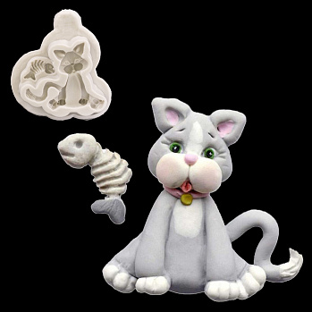 Силиконовый молд "Кот с рыбкой" 5,5*4,5 см (арт. 661554)