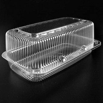 Пластиковый контейнер для упаковки рулетов, пирожных, капкейков или других кондитерских изделий.