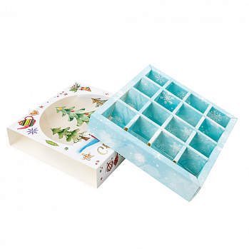 Коробка с обечайкой для 16 конфет с разделителями "Ёлочки" с тиснением, с окном (арт. 292228)