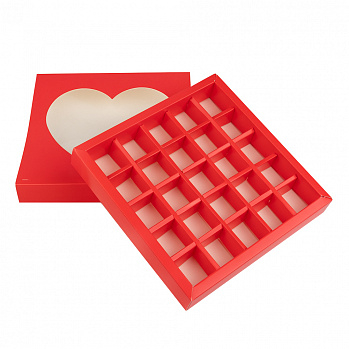 Коробка для 25 конфет с разделителями, Красная окно сердце (арт. 292265)