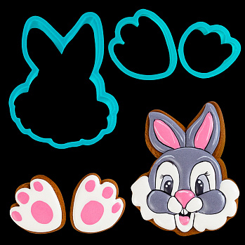 Размер вырубки: голова зайчика 85*105 мм, передние лапки - 35*35 мм, задние лапки - 50*45 мм.