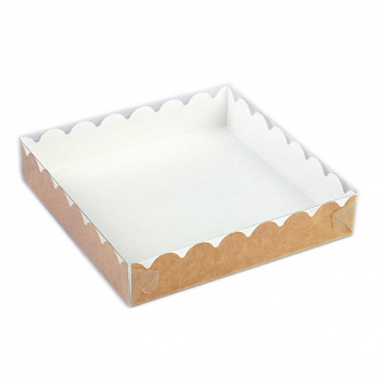 Коробка картонная с пластиковой крышкой для упаковки пряников, печенья, конфет, зефира, безе и других кондитерских изделий.