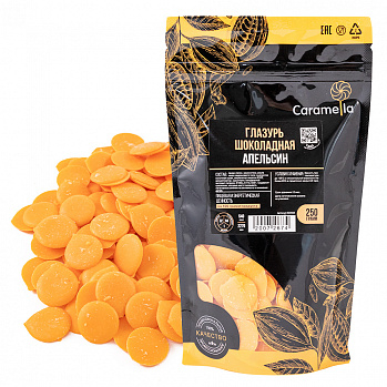 Глазурь шоколадная со вкусном и ароматом апельсина, в виде дропсов. Быстро плавится и быстро застывает, устойчива на готовом изделии.