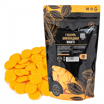 Глазурь шоколадная со вкусом и ароматом манго, в виде дропсов. Быстро плавится и быстро застывает, устойчива на готовом изделии.