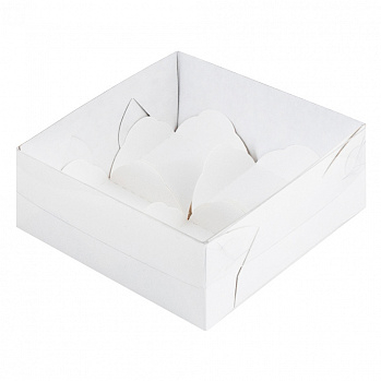 Коробка отлично подойдет для упаковки пирожных под велюром, моти и других порционных сладостей.