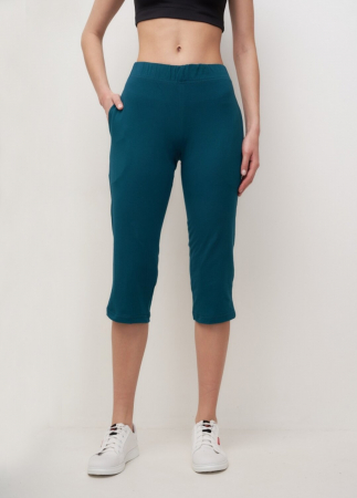 Бриджи, длиной ниже колена, пошиты из натурального хлопкового трикотажа с добавлением лайкры. Полотно прекрасно тянется, но сохраняет свою форму даже при длительной носке, хорошо пропускает воздух и не допускает перегрева. Благодаря этим качествам, бриджи, а попросту «велосипедки», самых разных цветов, не выходят из моды и их смело можно назвать незаменимым элементом базового гардероба каждой женщины. Бриджи составят достойную пару, как блузке спортивного стиля, так и фантазийной легкой рубашке. Уместны такие комплекты не только дома и в спортивном зале.