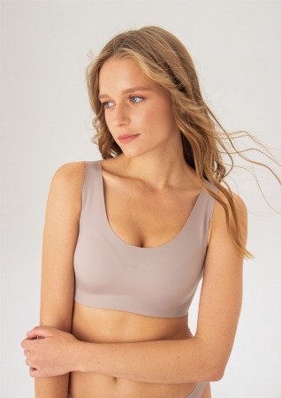 Эластичный бесшовный бюстгалтер-топ из нежного дышащего волокна с анатомическими латексными чашечками. Максимальный комфорт благодаря инновационной ткани и технологии, обеспечивающей отсутствие швов и косточек . У топа широкие мягкие лямки,которые совершенно не чувствуются на теле, а съемные чашки облегчают уход.