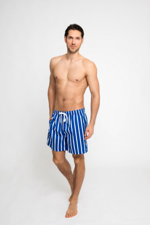 Мужские купальные шорты MARK 003 от европейского производителя Leyeroo. Изделие на завязках, с боковыми и задним карманами, выполнено из легкой быстросохнущей ткани. Летний морской принт в вертикальную полоску. Неэластичный материал.