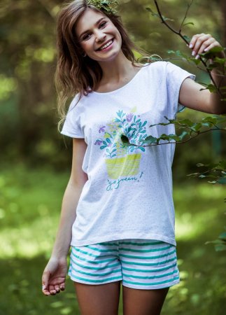 Комплект женский для дома и отдыха LNS 055 от европейского производителя KEY. Футболка свободного кроя, полукруглое декольте. Короткие шорты с боковыми карманами, мягкая тонкая резинка и кулиска на поясе.