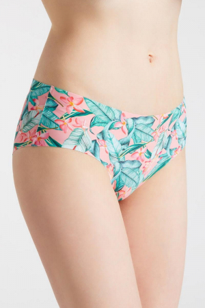 Модные бесшовные трусики с оригинальным принтом в сезоне весна-лето 2021. Розовый фон подчеркивает очарование ярких, тропических и цветочных принтов. Модель имеет классический фасон и гладкие края, благодаря запатентованной, бесшовной технологии INVISIBLE LINE®. Легкий трикотаж идеально подходит для повседневной эксплуатации. Цветные трусы с принтом отлично подойдут также для пляжа или в бассейн.