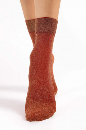 Мерцающие носки изготовлены по 3D-технологии с добавлением золотистого люрекса. Самый праздничный вариант этого сезона. Также подходит для повседневной носки.