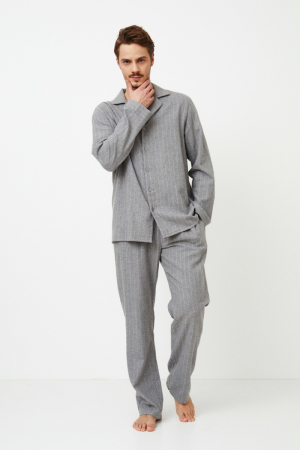 Представляем вашему вниманию длинную пижаму Carl, которая всегда будет незаменима для вашего ночного отдыха. Комплект я сшила из мягкого хлопка спокойного серого цвета в тонкую полоску. Топ с длинными рукавами и v-образным вырезом горловины, застегивающийся на пуговицы, сочетается с брюками классического кроя, украшенными удобными карманами. Этот пижамный комплект представляет собой классический образ, который никогда не выходит из моды. И не забудьте порадовать свою вторую половинку стильным нарядом — купите длинную пижаму Clara, потому что кто сказал, что перед сном нельзя устроить показ мод для двоих? Ткань хлопок фланель.