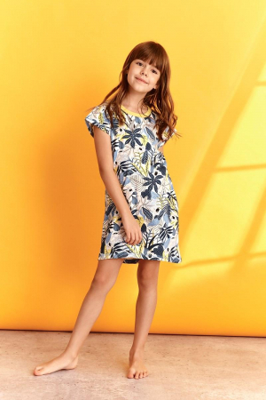Хлопковая детская сорочка для девочек KALI от европейского производителя Taro. Свободный силуэт средней длины, изделие с коротким. Принт в лепестки растений.